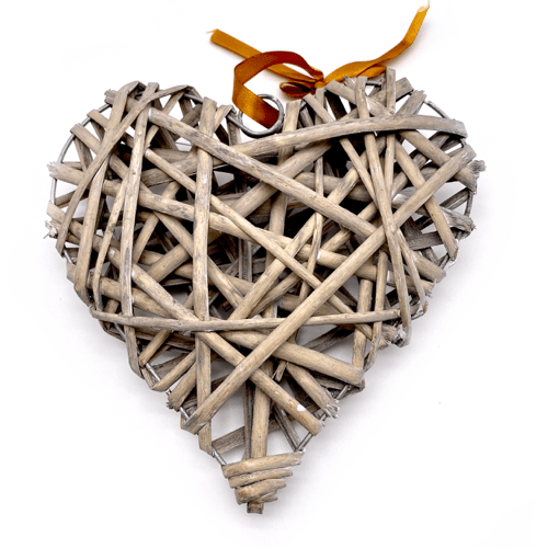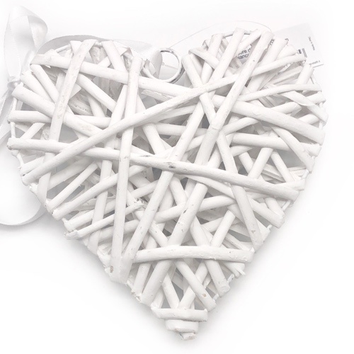 Cuore in viticcio color naturale e bianco.